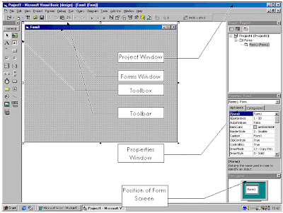 Interface antar muka Visual Basic 6.0, berisi menu, toolbar, toolbox, form, project explorer dan property seperti terlihat pada gambar 1.1 berikut: